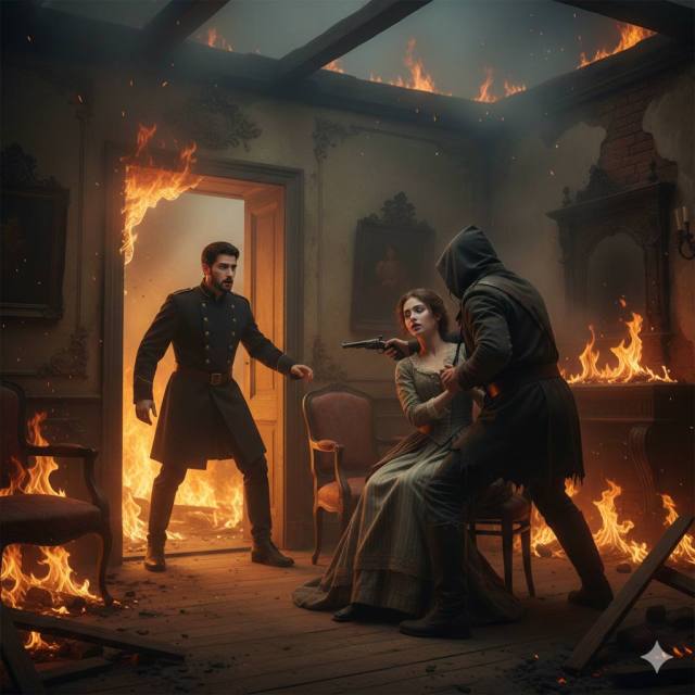 Fue ese acto insensato lo que salvó la vida de la muchacha, pues el arma que apuntaba a la frente de Marcela falló el disparo. Se llevó la chica la mano a la sien y cayó al suelo, volviéndose hacia la entrada la sombra negra.