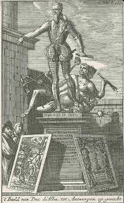 Primero, los hechos: una vez entró en Bruselas a lo grande —«una entrada triunfal que recordaba a la de Carlos V en Milán», explica William S. Maltby en El gran duque de Alba—, don Fernando Álvarez de Toledo y Pimentel decidió encargar una estatua suya que debía ser erigida en la ciudadela de Amberes. Toma ya. Ojo a la descripción de la estatua que hace Maltby. Sin desperdicio alguno: «Este increíble monumento, que exhibe gran parecido a la estatua de Carlos V que hiciera anteriormente Pompeo Leoni, le representaba vestido con armadura aplastando las figuras de la Sedición y la Herejía. La inscripción le describe como «el más grande servidor del rey». Forjada con los cañones capturados en Jemmingen y ejecutada con cierta destreza por el escultor Jonghelink, ofendió a todo el mundo». Con dos cojones.