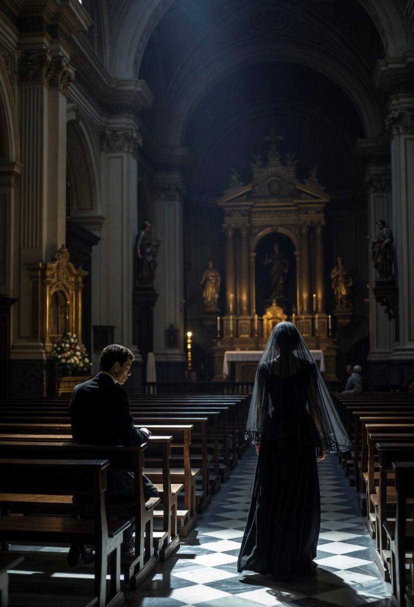 Faltaba menos de media hora para la última misa del día y podría haber contado con los dedos el número de feligreses. Buscaría el umbrío rincón del Santísimo para unos minutos de recogimiento entre el negro y el rojo de las paredes. Sólo una persona ocupaba la capilla: por las formas, una mujer, una dama de luto arrodillada en la primera fila.
