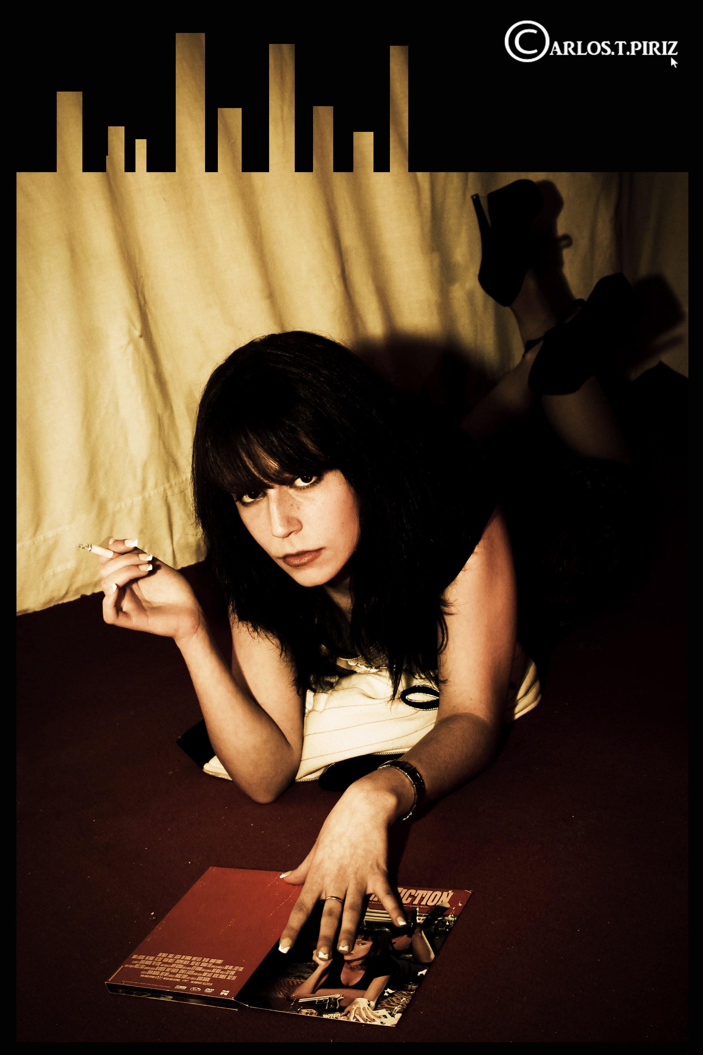 Recupero mi espacio tras el Stas y lo hago para presentar una sutil interpretación de la portada de la película Pulp Fiction aprovechando el book que le he hecho a una amiga, y como homenaje a la esencia de este gran film, espero que encuentren el parecido y la similitud que yo he sabido encontrarle.