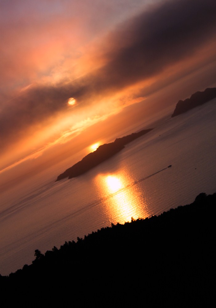 Para esta semana tan cálida en pleno verano, me gustaría daros un paseo por las playas de nuestro país, de norte a sur, y empezamos por esta preciosa estampa. Un bonito atardecer en un lo alto de un cerro, en algún lugar de la costa de Vigo, sin duda Galicia, un lugar recomendable para ir en estas fechas tan sofocantes.