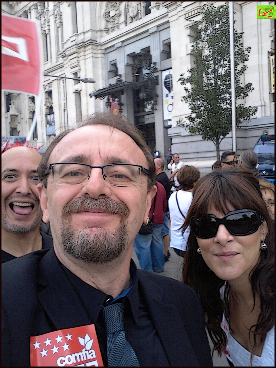 La composición es atípica en esta fotografía sindical, tomada a las puertas del Ayuntamiento hace unas semanas, durante una concentración contra los recortes de empleo y prestaciones en el Sector Público. He tirado cientos de fotografías a movilizaciones durante toda mi vida (empecé con rojerías a los 14 años de edad) pero nunca un autorretrato.