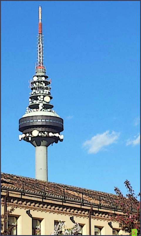 El Pirulí de Madrid, o sea, Torrespaña, domina la línea del horizonte de Madrid. Símbolo fálico por excelencia, esta foto está tomada desde los jardines del privado Hospital Beata María Ana de Jesús, frente al público Hospital Gregorio Marañón.