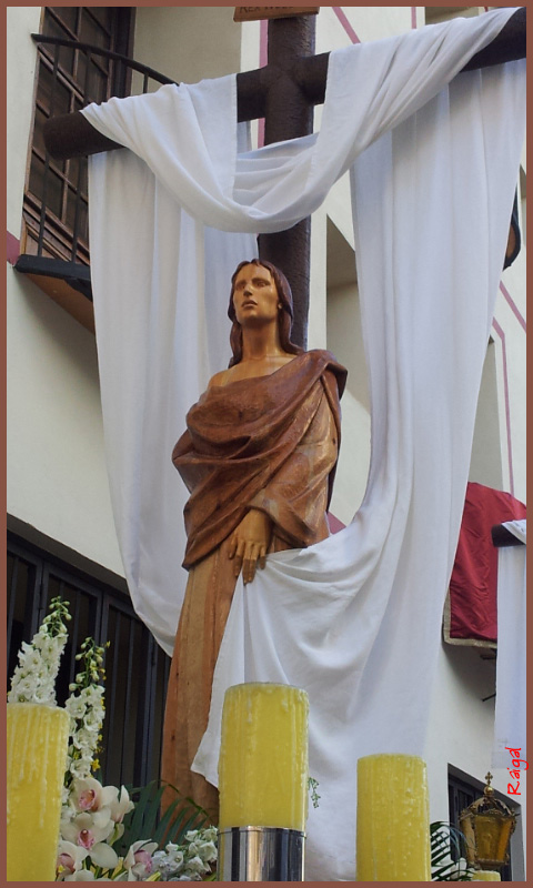 Un paso de Semana Santa tan particular como éste, con una imagen un punto andrógina, sencilla, bella en su austeridad, me llevó a preguntar que de quien se trataba, dada su diferencia evidente con la parafernalia de Cristos y Vírgenes a su alrededor. El cofrade me contestó orgulloso, por lo peculiar del paso y, quien sabe, si por todas las connotaciones y significados históricos de tan peculiar personaje: “Es la Magdalena”