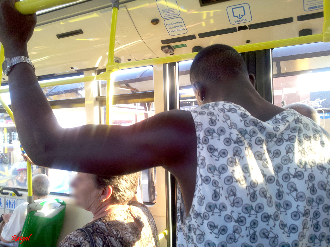 Algunas poderosas presencias físicas inundan espacios tan angostos y saturados de personal como son los buses, y más en hora punta. El caballero de los brazos desnudos a duras penas conseguía moverse en el interior del bus número 10 desde Cibeles hasta Atocha. Al reparar en el dibujo de su camiseta recordé un antiguo comentario de una compañera: «Para darse una vuelta, viene bien cualquier bicicleta». Estaba claro que el gigante en cuestión no era «cualquier» bicicleta.