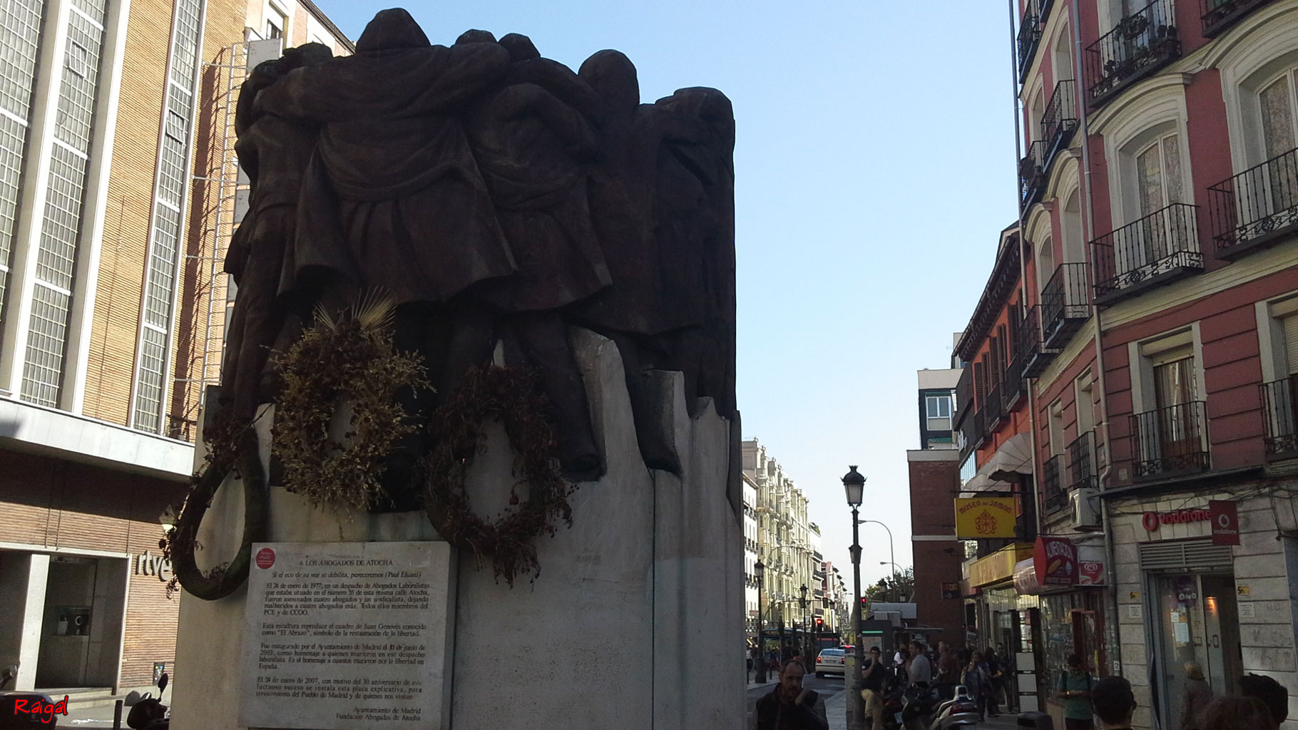 A la salida del metro de Antón Martín encontramos el monumento a los abogados laboralistas de Comisiones Obreras asesinados en enero de 1977 por pistoleros fascistas en su despacho de la calle de Atocha.
