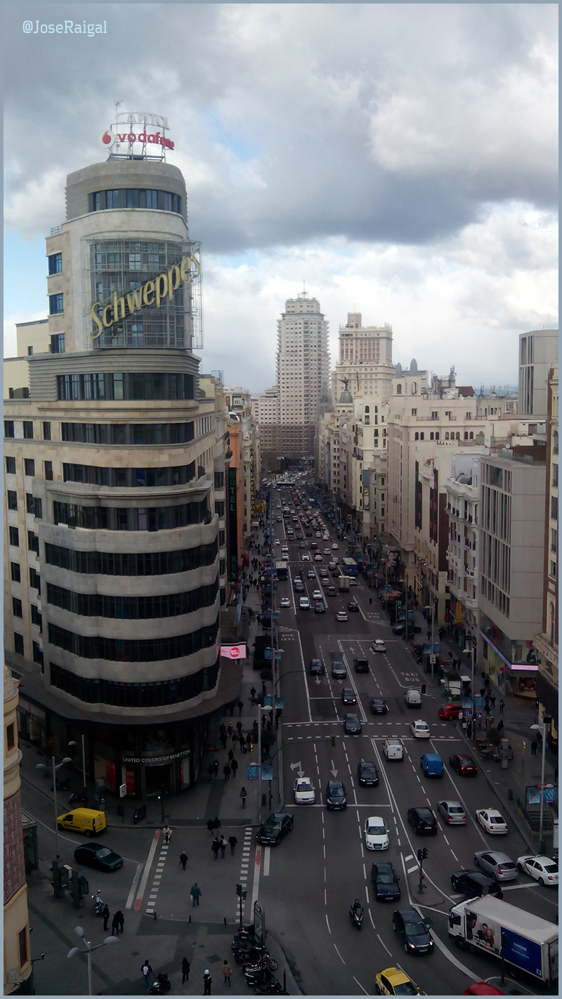 Hace semanas publiqué en Instagram esta foto, u otra de la misma serie, tomadas desde la cafetería de un Gran Almacén en la madrileña Plaza de Callao. Instagram ha supuesto una revolución en mi relación con la fotografía (y en la de millones de personas, por supuesto), pero la restricción a su formato estándar cuadrado a veces se me queda corta. Aquí tenéis la fotografía original aprovechando el tirón vertical de mi Neken N6, tan ortopédico y tan querido 😉