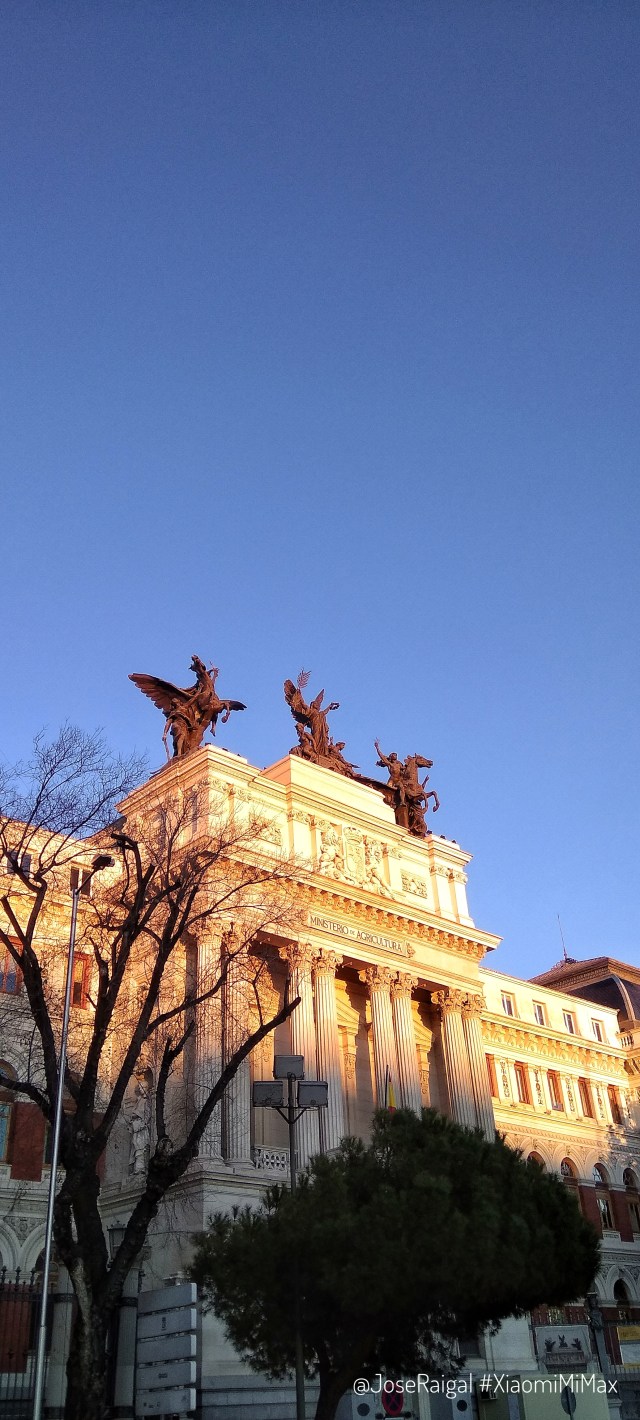 Las estatuas que coronan el Ministerio de Agricultura en Atocha se recortan contra el cielo ofreciendo su silueta contra el azul cambiante o las nubes de turno.