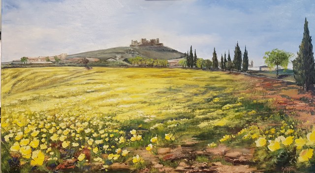 Me encanta este cuadro !!!..Y lo q trasmite este precioso paisaje por su luminosidad y claridad, es llamativo y vibrante, atrae fácilmente la atención ese campo de color amarillo bajo ese majestuoso castillo .. Enhorabuena y gracias por compartir tus trabajos!!..😉😍😍👏👏👏