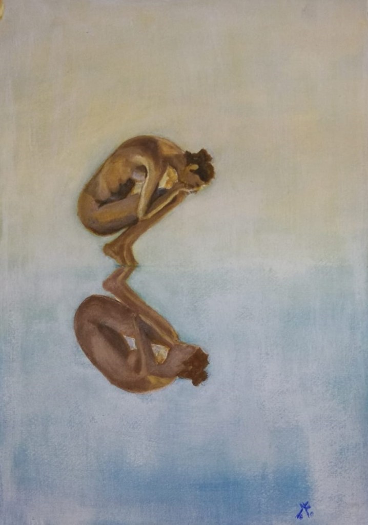 Mujer en la orilla: Mixto acuarela y acrílico sobre papel 45 x 32 cm