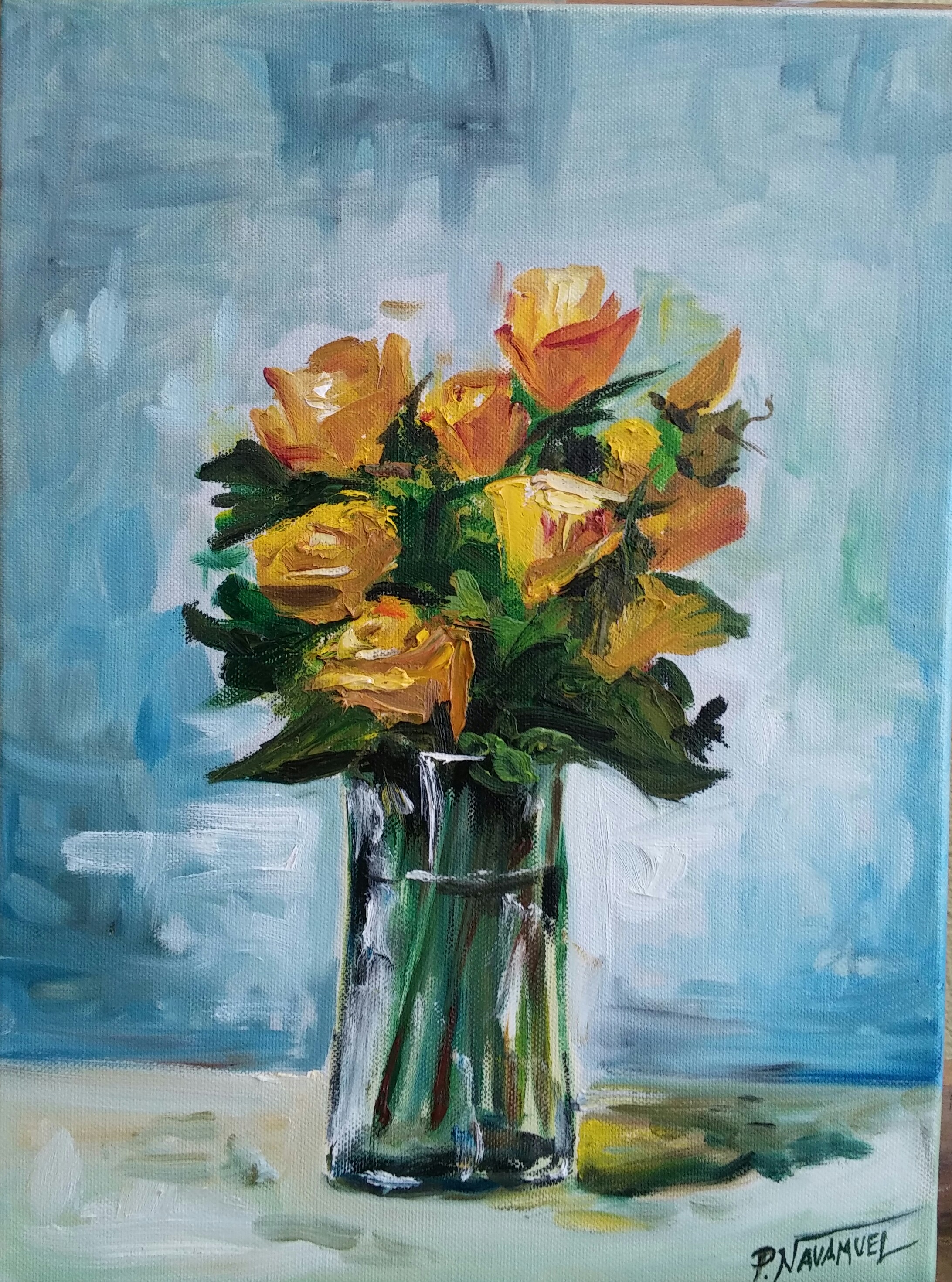 Hoy traigo por aquí una oferta muy especial sobre mi obra «Rosas y cristal», un óleo pintado en lienzo de 40×28