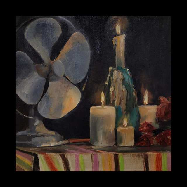 Hoy no deberías dejar escapar a un precio muy muy especial «El ventilador y las velas», un óleo de 30×30.