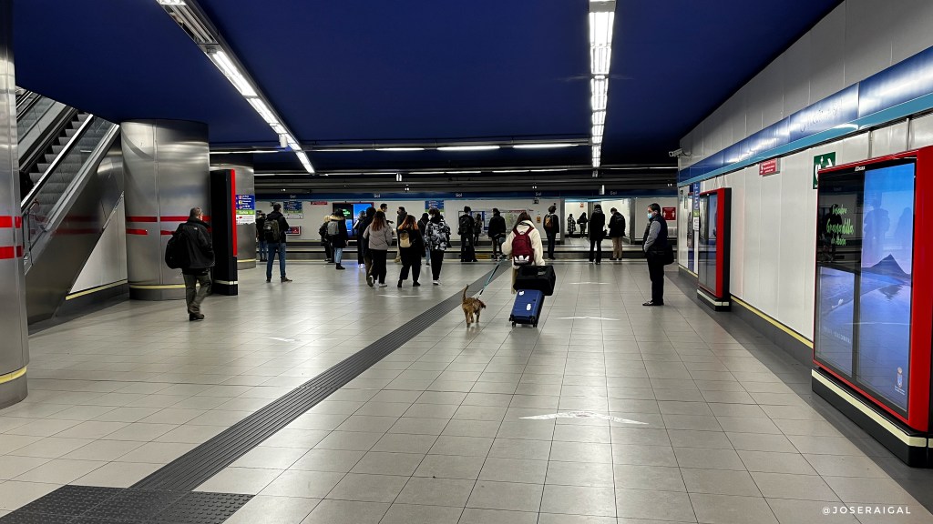 El bicho nos hizo pararnos y nos lastra desde hace dos años retrasando nuestra vuelta al ruedo. Este andén de la estación de metro de Sol es una muestra, a estas horas antes de la pandemia estaba a rebosar.