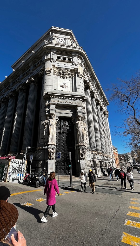 Con diez kilómetros y medio la Calle de Alcalá es la más larga de Madrid, siempre Me han impresionado los majestuosos edificios con los que arranca desde la Puerta del Sol. Alcalá, 49, durante mucho tiempo sede del Banco Central, acoge ahora al Instituto Cervantes. Sus cariátides observan cómo pasa la historia de Madrid desde 1918, hace ya más de un siglo.