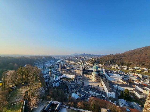 La ciudad está dividida por el río Salzach, con los edificios medievales y barrocos de la Altstadt (Ciudad Vieja) peatonal en su orilla izquierda, frente a la Neustadt (Ciudad Nueva) del siglo XIX, a su derecha.