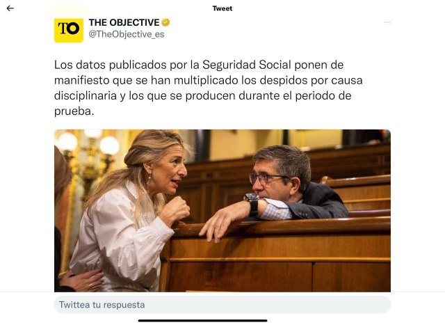 El debate parte de un tuit del diario The objective ( @TheObjective_es) sobre un artículo firmado por Rocío Regidor (@RocioRegidor88)