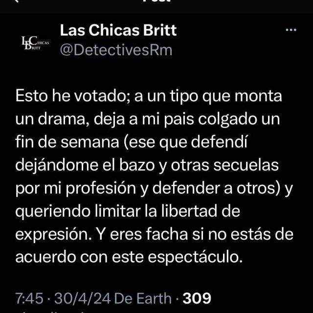 El debate en esta ocasión parte de un tuit puesto por Las Chicas Britt, @DetectivesRm