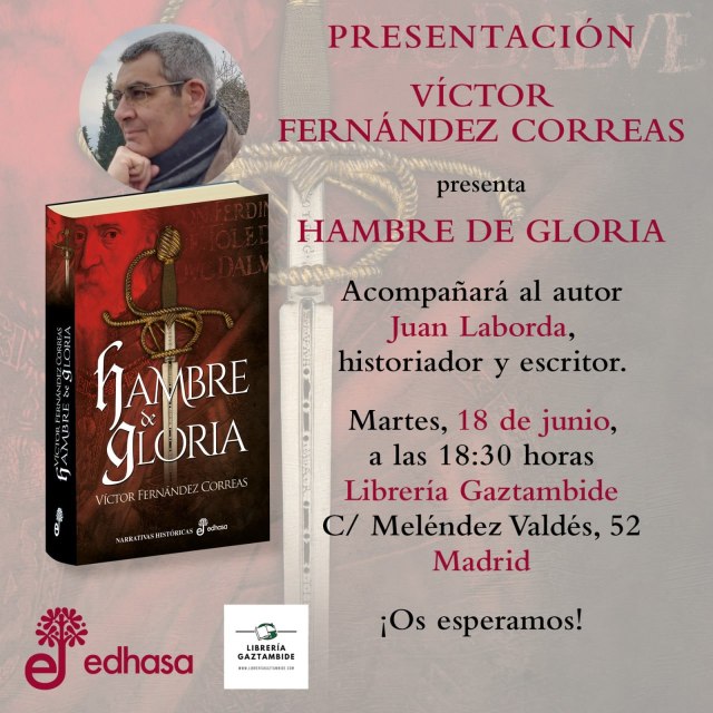 Ven mañana a la Librería Gaztambide de Madrid a eso de las 18:30 presento Hambre de gloria con editorial Edhasa