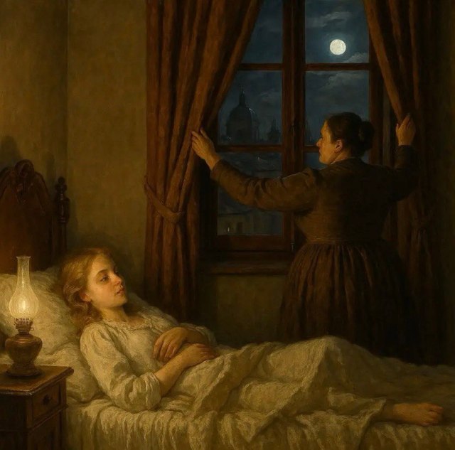 Vicenta se acercó a la ventana para comprobar que los postigos estuvieran bien encajados y, maternal, colocó las mantas de Llara.