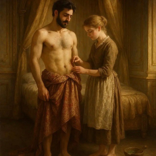 Si esperaba una respuesta cortante, otro de sus ataques, erró, ya que el joven se limitó a mirarla perplejo antes de asentir con gravedad. Despacio, fruncida la frente, baja la mirada, se levantó y, pudoroso, ocultó su virilidad bajo la colcha arrebujada entre las manos.