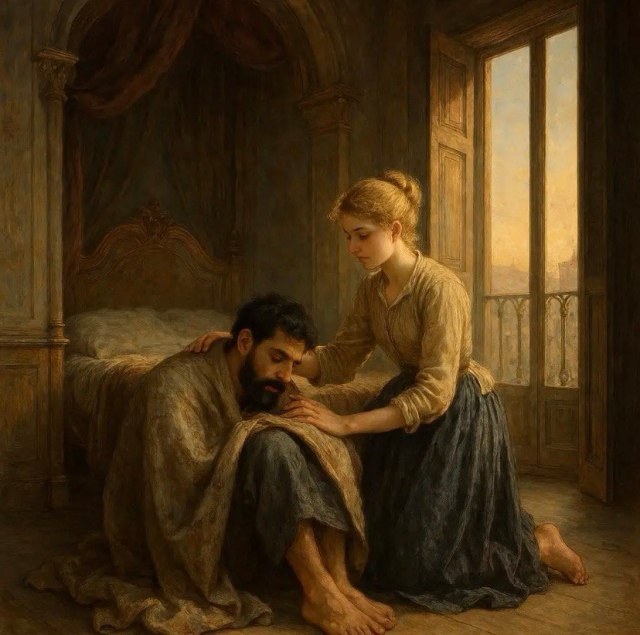 Llara halló la puerta abierta. Entró, echó el pestillo e ignoró las preguntas, cualquier recelo, su propia razón: se persignó antes de acercarse al lecho y tiró de la colcha de lana para cubrir la desnudez y la miseria de aquel pobre hombre.
